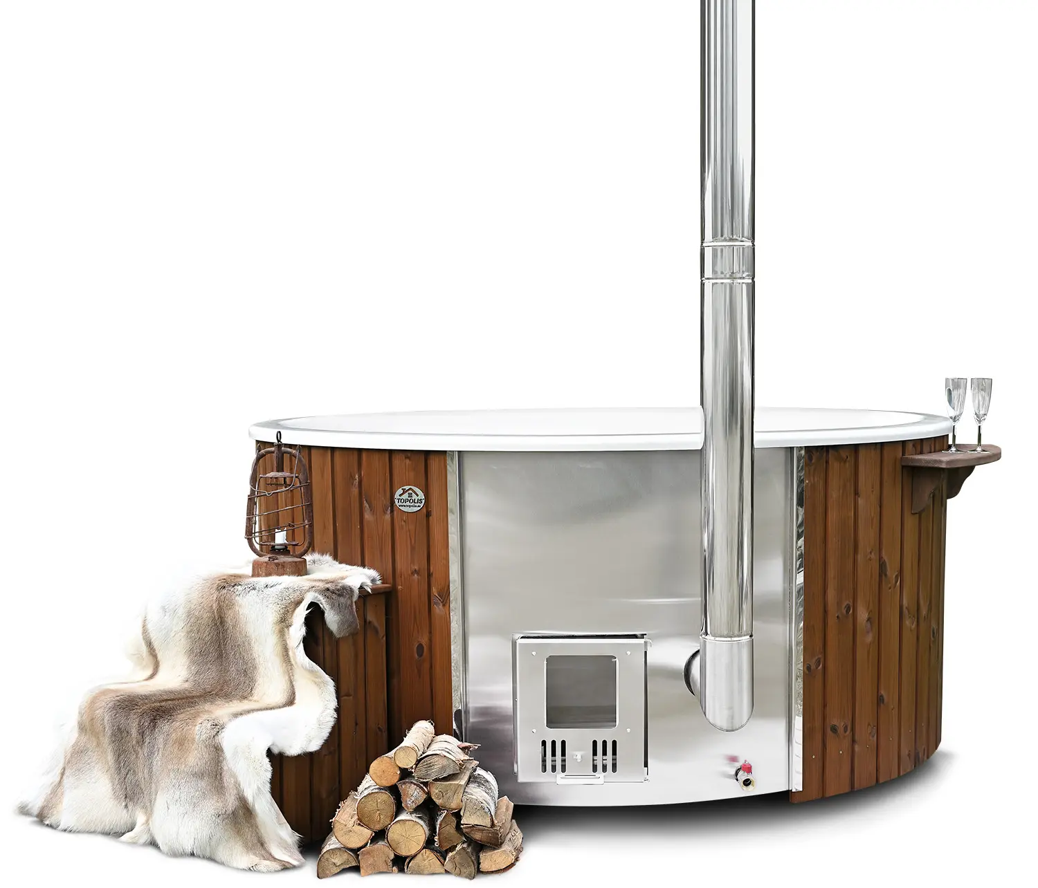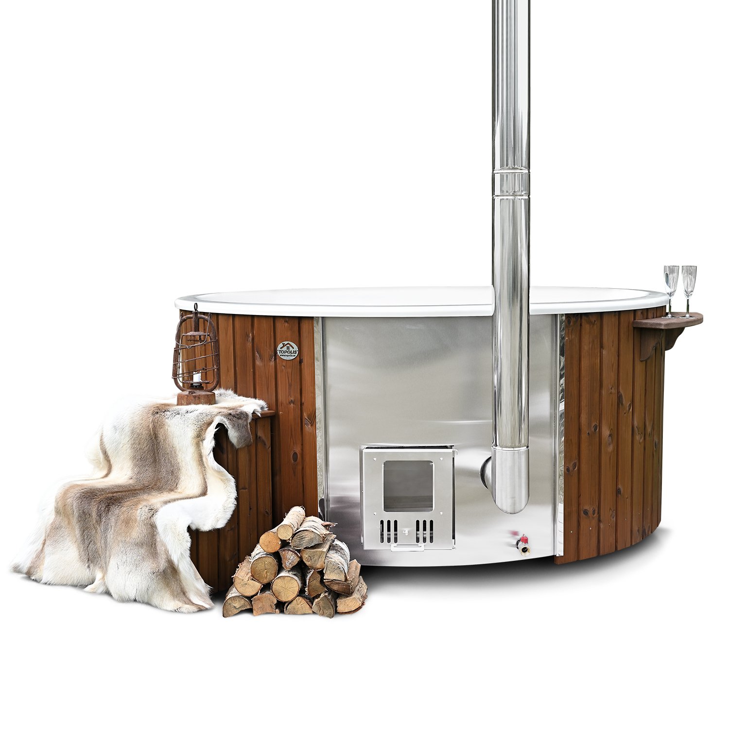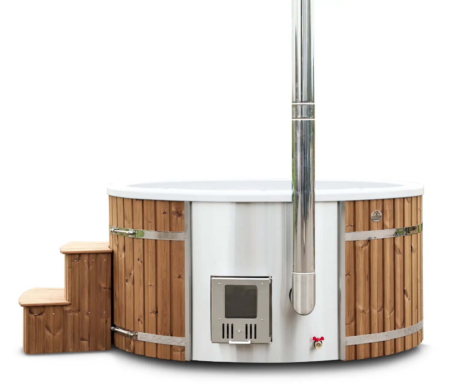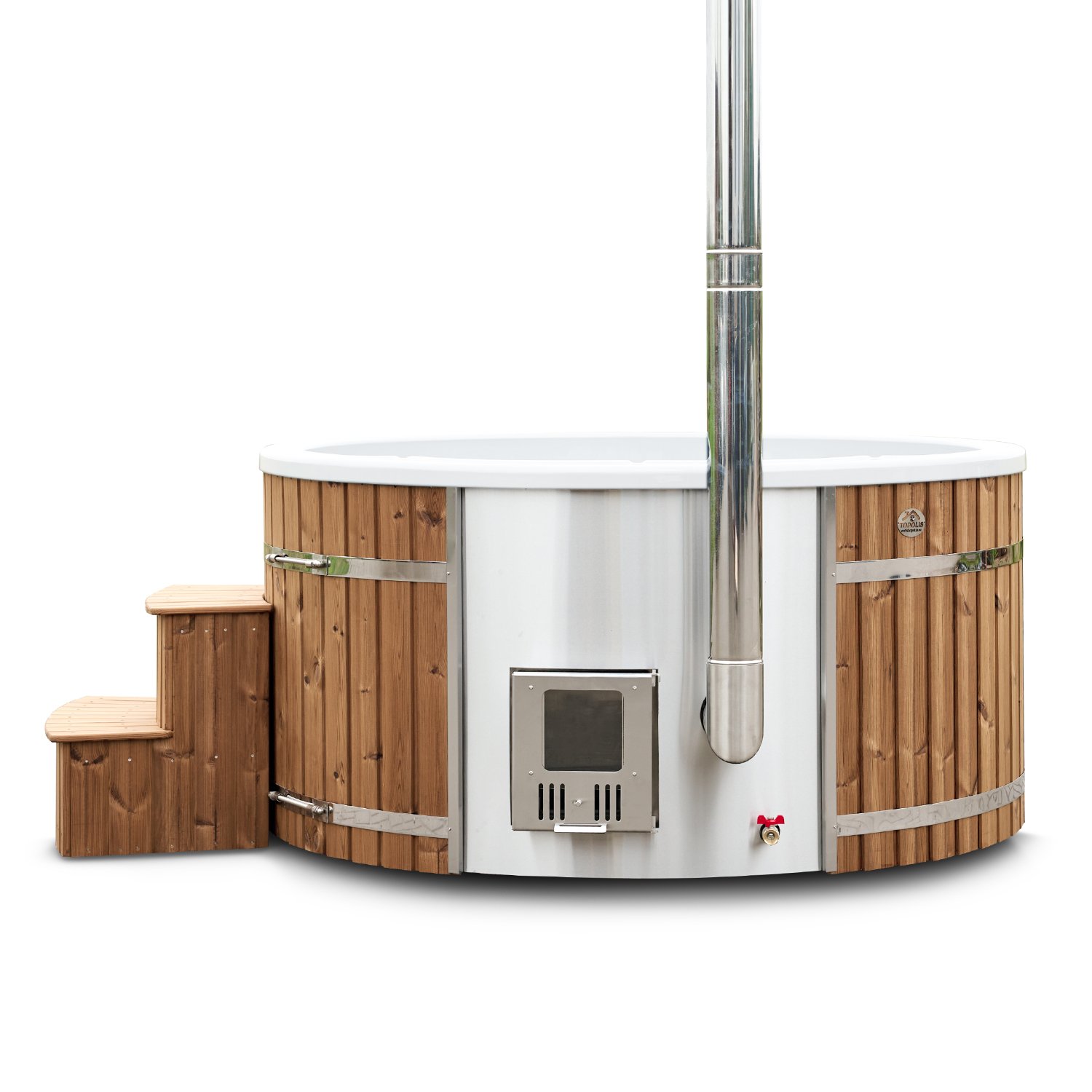Standardkamin är gjort i AISI 304 rostfritt stål. Till dig som planerar att använda saltvatten (havsvatten) eller placera badtunnan nära havet rekommenderas AISI 316 stål.