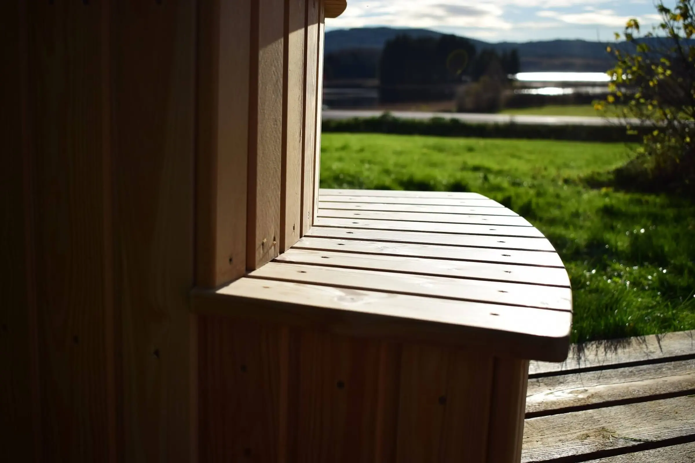 • Badtunna Wellness Deluxe 200 cm. (yttermått), går att få i sibirisk träpanel gran, lärk eller termoträ